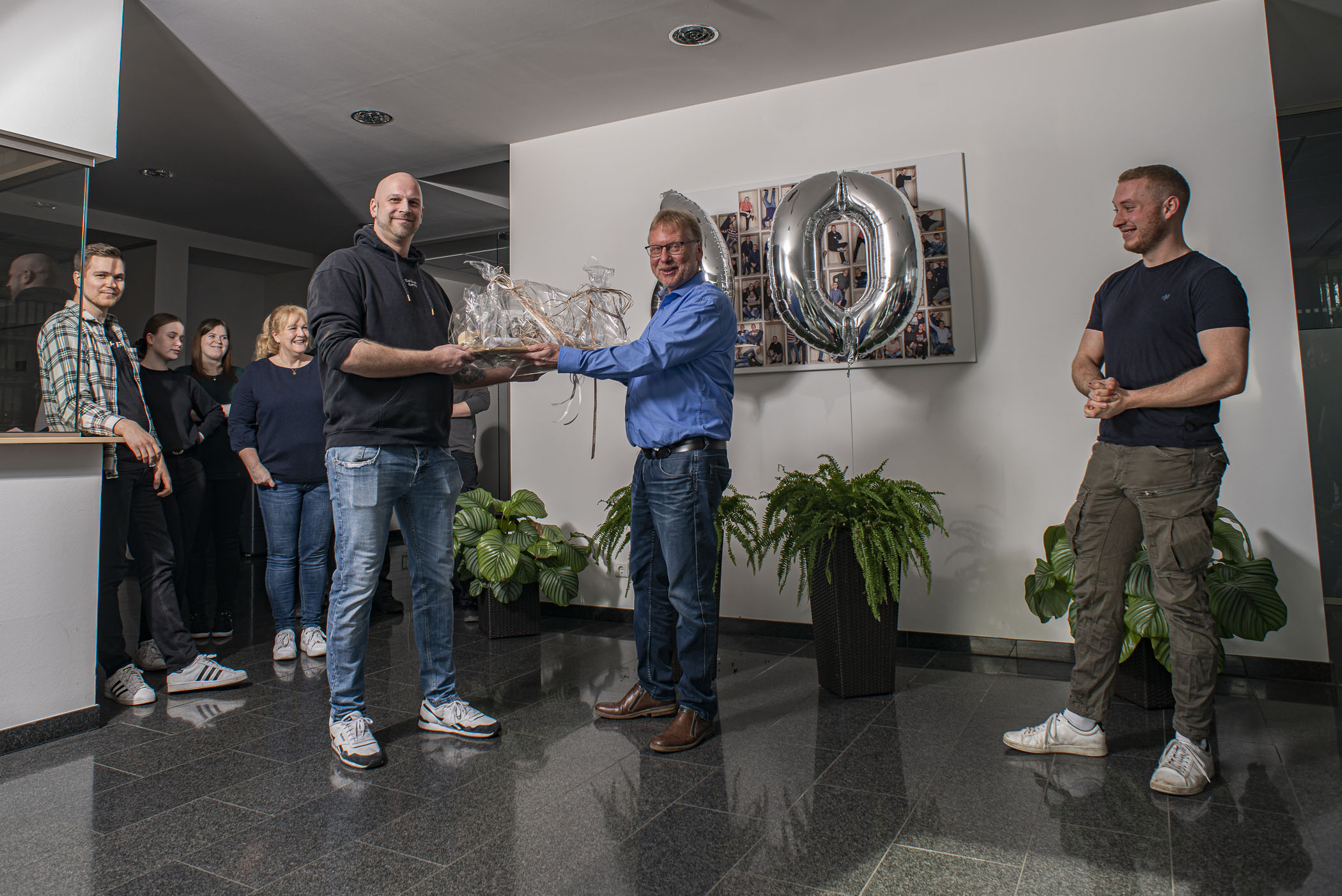 Von unserem Serviceleiter, Maik Meichsner, wurde im Foyer ein kleines Präsent der Mitarbeiter überreicht und im Anschluss wurde noch mit einem kleinen Teil der Belegschaft auf diesen besonderen Tag angestoßen.