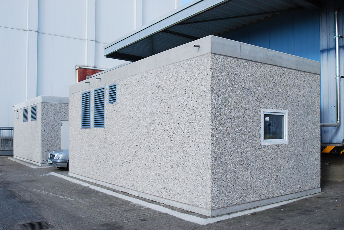 Wetterfeste und solide Fertigteilgebäude aus Beton für Kompressoren- und Luftaubereitungsanlagen.